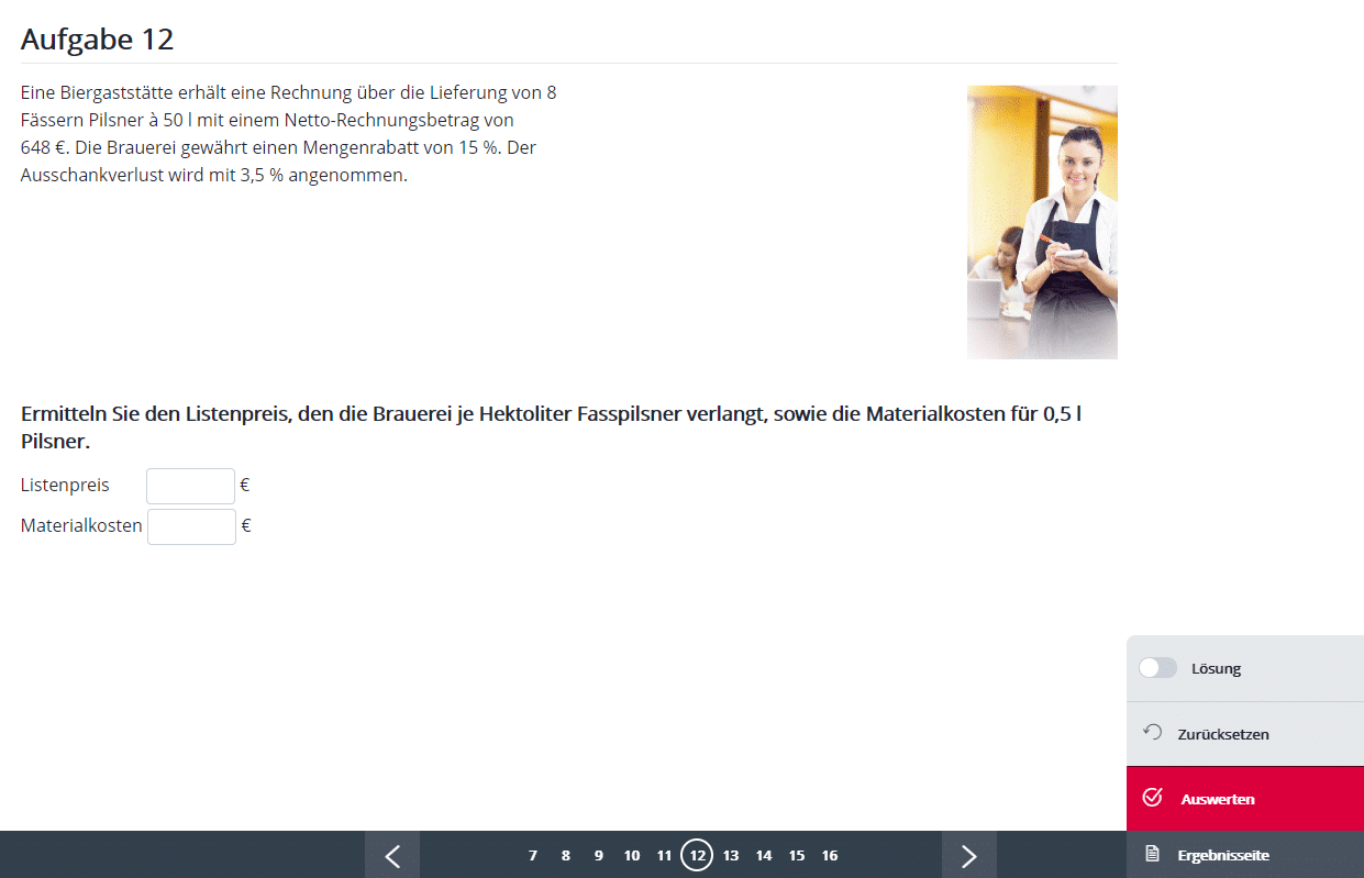 Die Bearbeitung von verschiedenen Aufgabentypen aus der gastronomischen Fachpraxis soll zur Festigung der rechnerischen Fertigkeiten beitragen.