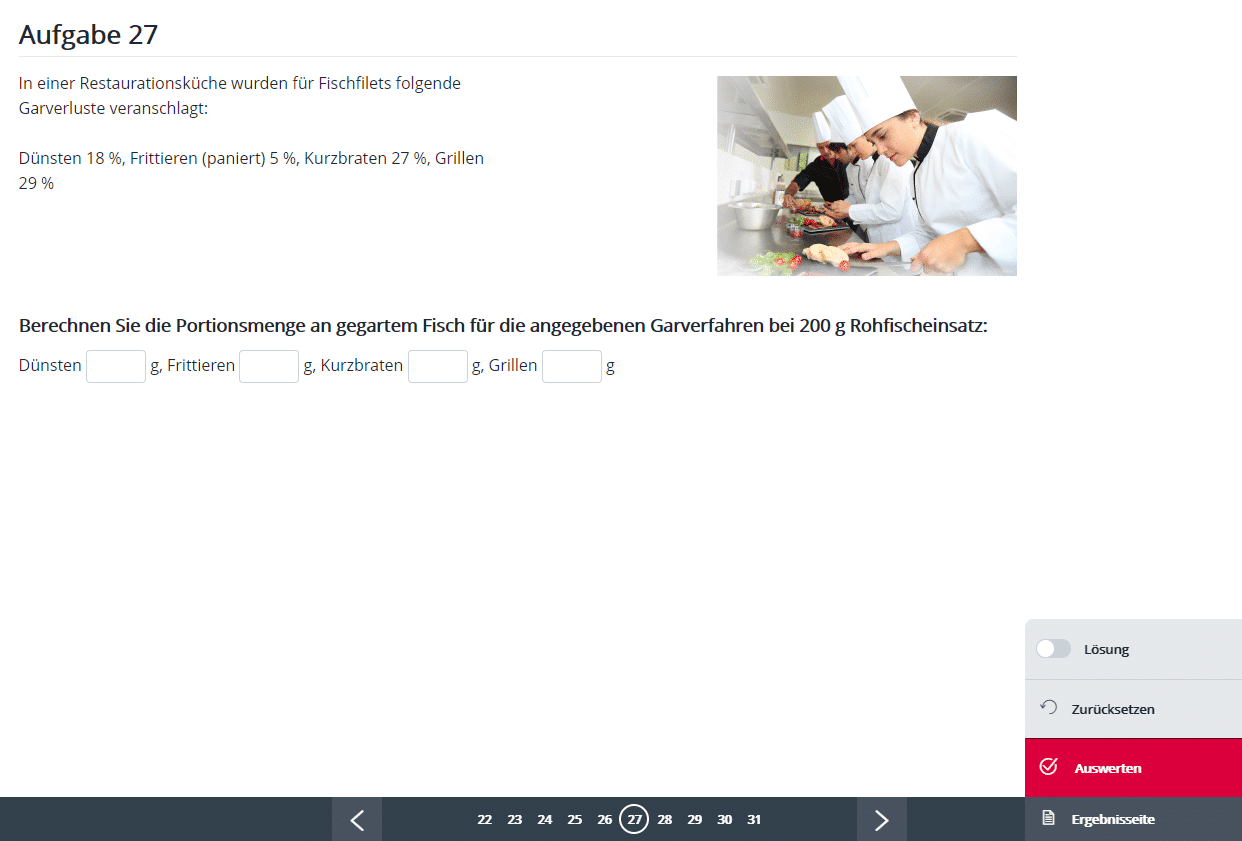 Dieser Online-Kurs enthält über 450 Übungsaufgaben aus dem Bereich Gastronomie und Küche. Er dient der optimalen Vorbereitung auf Klausuren sowie die Zwischen- und Abschlussprüfung.