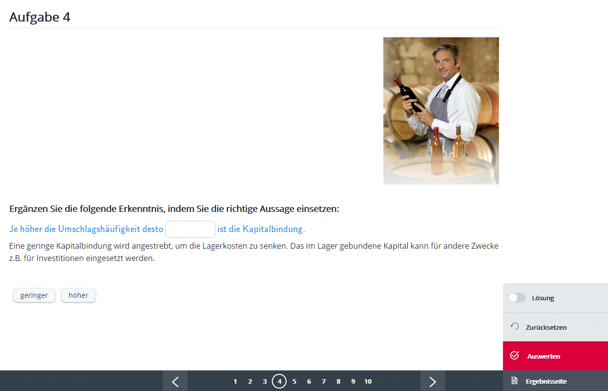 Nach Abschluss jeder Lektion erhält der Lernende direkt eine Rückmeldung über den erreichten Wissensstand; das motiviert und spart Zeit, denn dadurch ist eine zielstrebige Arbeit möglich.