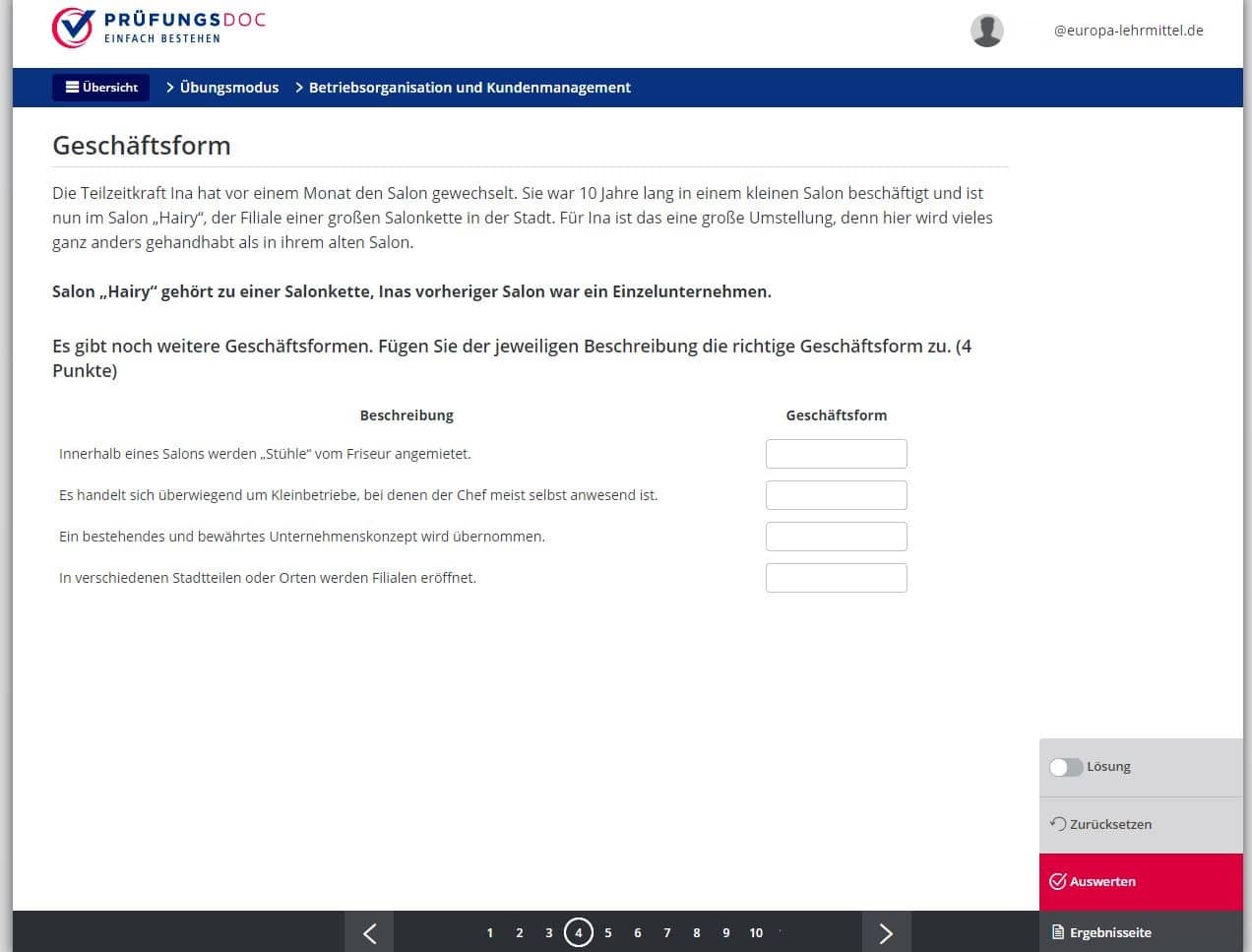 Prüfungsdoc ermöglicht webbasiertes Lernen, Üben und Wiederholen zur Vorbereitung auf Klausuren sowie die Zwischen- und Abschlussprüfung inkl. Simulation der Original-Prüfungen mit direkter Auswertung der Ergebnisse. Optimiert zur Nutzung auf Desktop, Tablet und Smartphone.