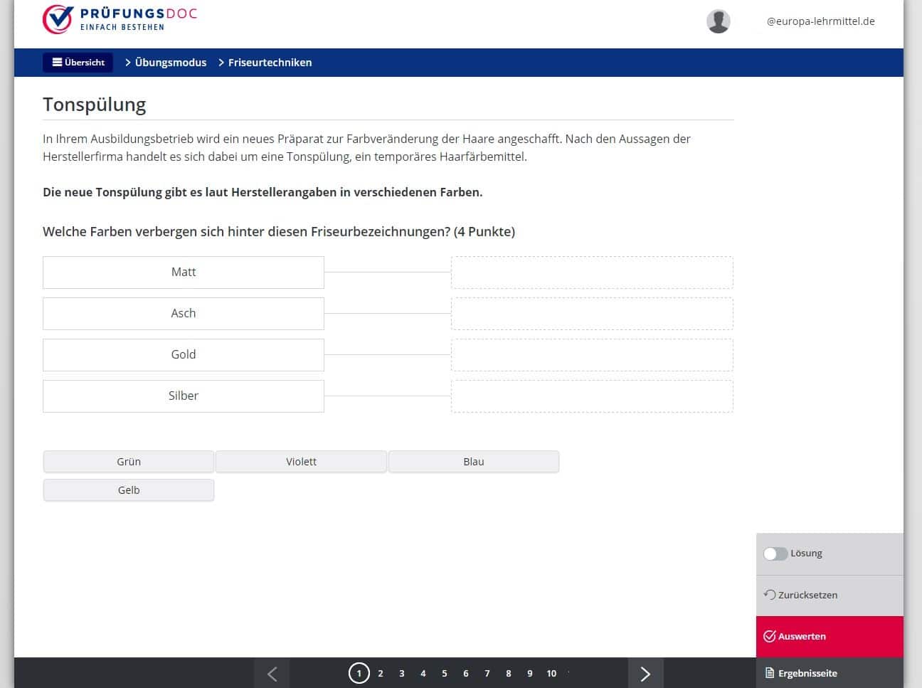 Sie können die Fragen im Übungsmodus trainieren oder eine Prüfungssimulation durchführen.
