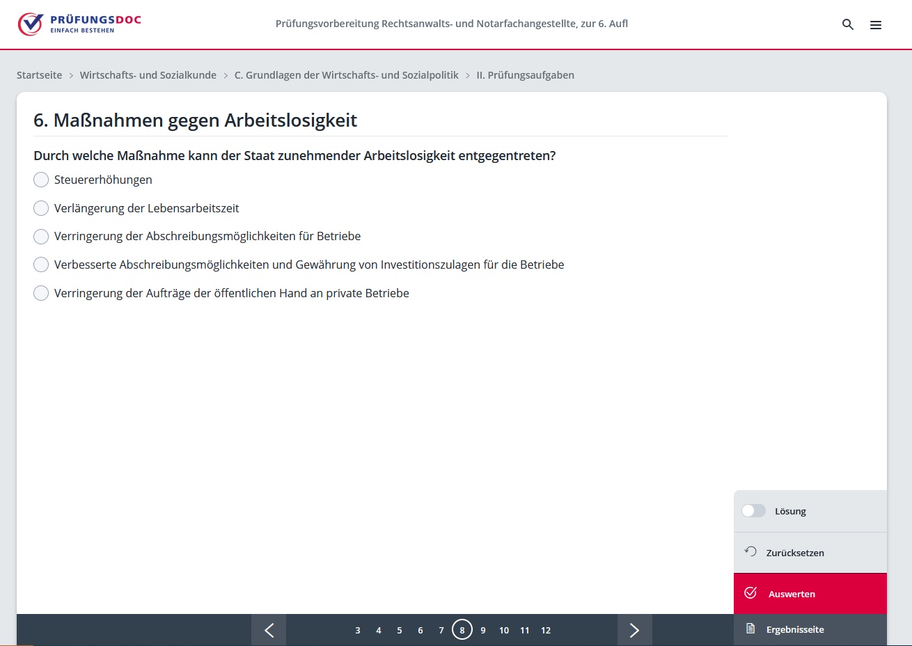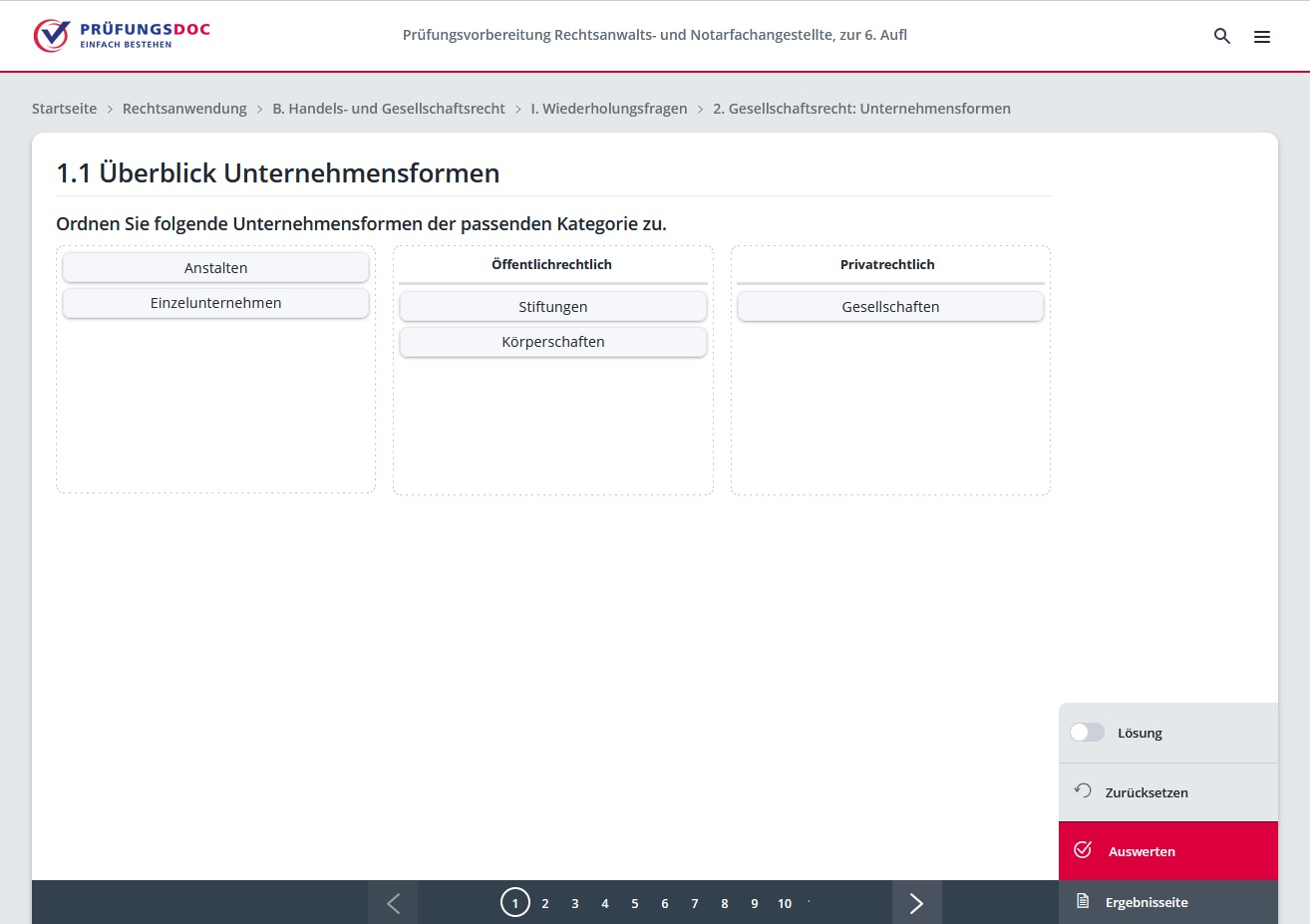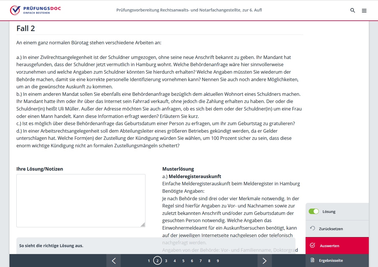 Dieser Kurs enthält über 1.500 Aufgaben zur optimalen Vorbereitung auf die Zwischen- und Abschlussprüfung im Ausbildungsberuf Rechtsanwaltsfachangestellte / Rechtsanwaltsfachangestellter bzw. Rechtsanwalts- und Notarfachangestellte / Rechtsanwalts- und Notarfachangestellter sowie (mit Einschränkungen) Notarfachangestellte/Notarfachangestellter.