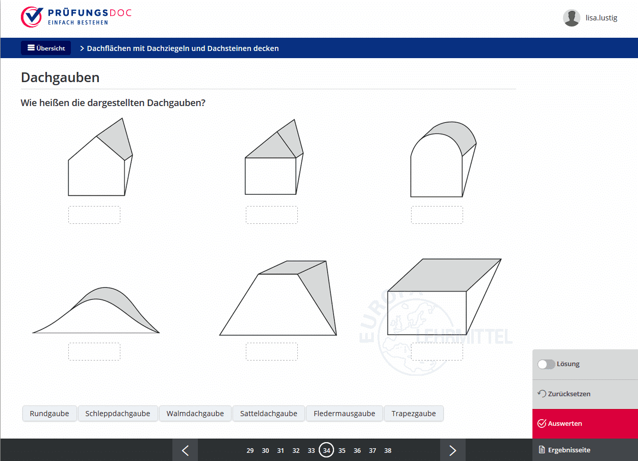 Dieser Prüfungsdoc-Kurs enthält ca. 160 Aufgaben zur optimalen Vorbereitung auf die Abschlussprüfung im Bereich Dachdeckerhandwerk.