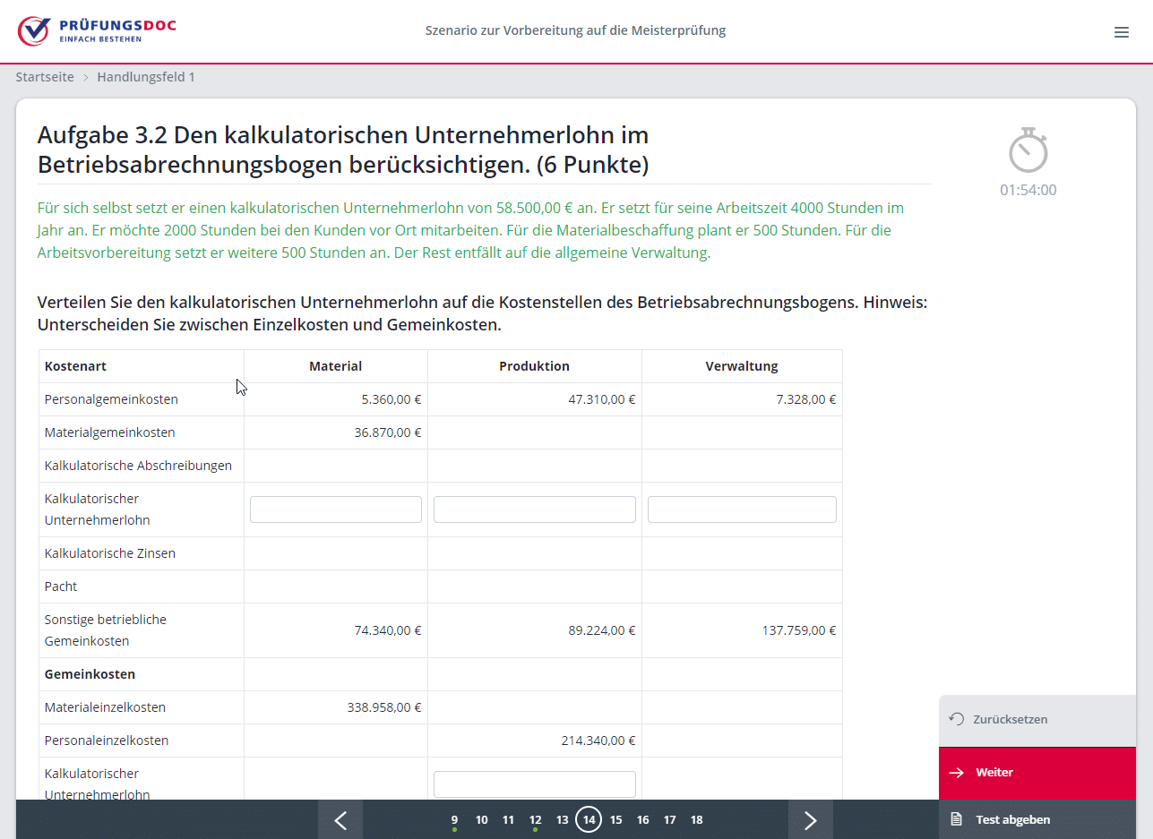 - Aufgabe 3: Betriebsabrechnungsbogen und Kalkulation (9 Aufgaben; 38 Punkte; Handlungsfeld 1e)